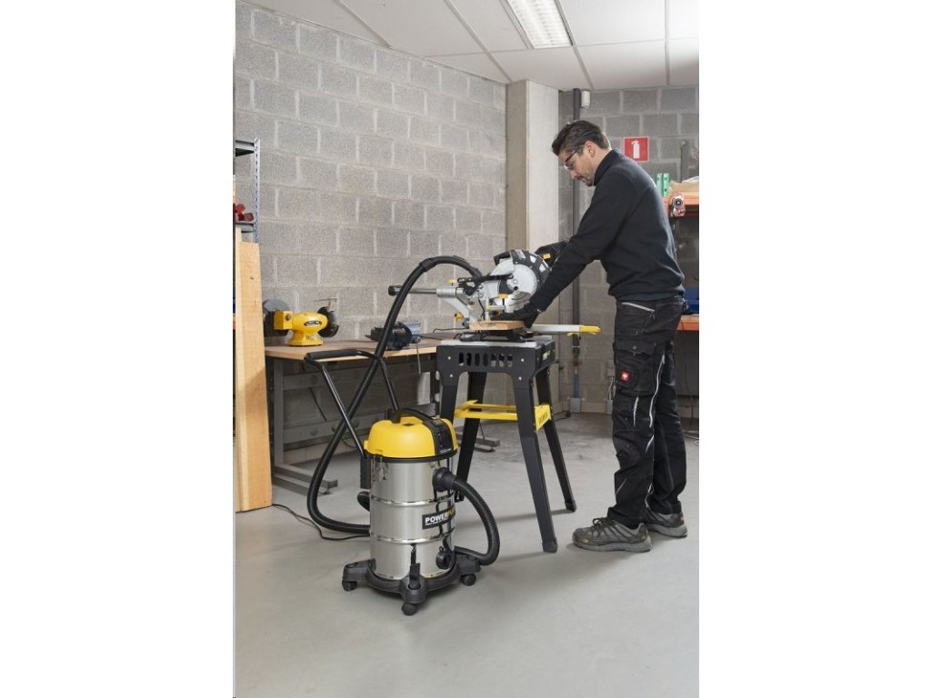 Průmyslový vysavač Powerplus POWX3240 zvládne mokré i suché vysávání a je vhodným pomocníkem do domácností, dílen, garáží i pro potřeby řemeslníků.