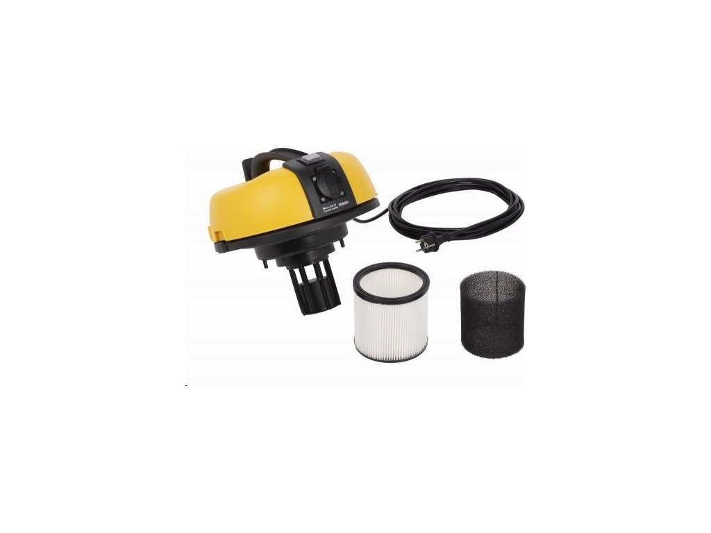 Na víku vysavače najdete kromě praktického madla také zásuvku s konstantním proudem pro připojení elektrického nářadí s automatickým spínačem. Jistě vás potěší také beznástrojový systém pro snadnou a rychlou výměnu filtru. Vysavač je dodáván s bohatým příslušenstvím.