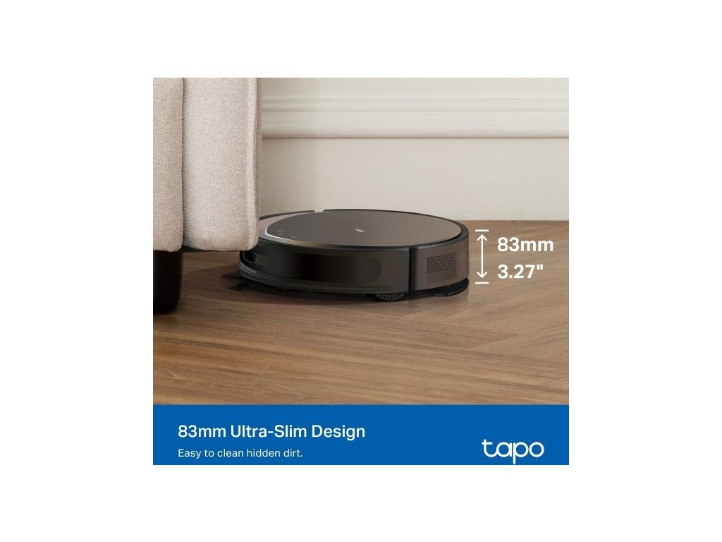 Dílky štíhlému tělu s výškou 83 mm dokáže vysavač zajet i pod nábytek. Chytrá technologie Tapo IQ+ Smart Cleaning funguje jako mozek vysavače. Pokročilé senzory a algoritmy zabrání vysavači narážet do věcí, uvíznout pod nábytkem nebo sjet ze schodů. Snadno překoná dveřní prahy a tlusté koberce s výškou do 22 mm, takže ho nebudete muset neustále hlídat.