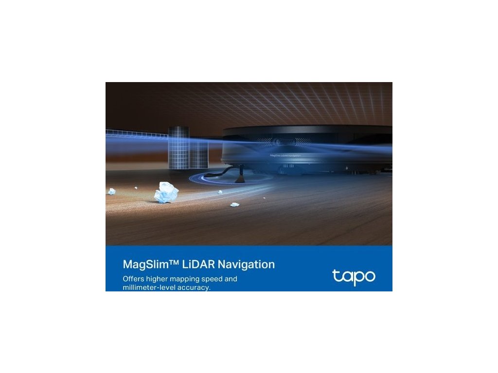 Vysavač TP-Link je vybavený inteligentním navigačním systémem MagSlim™ LiDAR, s jehož pomocí dokáže během několika minut zmapovat celou domácnost. Rozpozná a zafixuje také zdi a různé překážky. Díky 4 lokálně uloženým vícepodlažním mapám rychleji rozpoznává různá podlaží. Naskenovanou mapu můžete uzamknout, abyste vysavači zabránili v případných změnách.