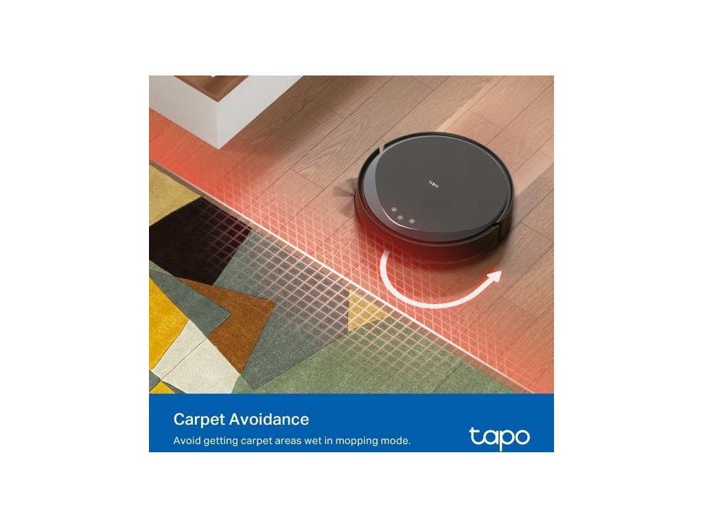 Tapo RV20 Max umí zametat, vysávat i mopovat. Vypořádá se s lepkavými skvrnami, zatímco vy se věnujete jiným povinnostem, odpočinku nebo svým dětem. Do nádržky se vejde až 300 ml vody. Vyberte si správný tok vody ze 3 stupňů a nechte úklid na robotickém pomocníkovi. Velkou výhodou je rovněž funkce vyhýbání se kobercům, které tak při vytírání nebudou mokré.