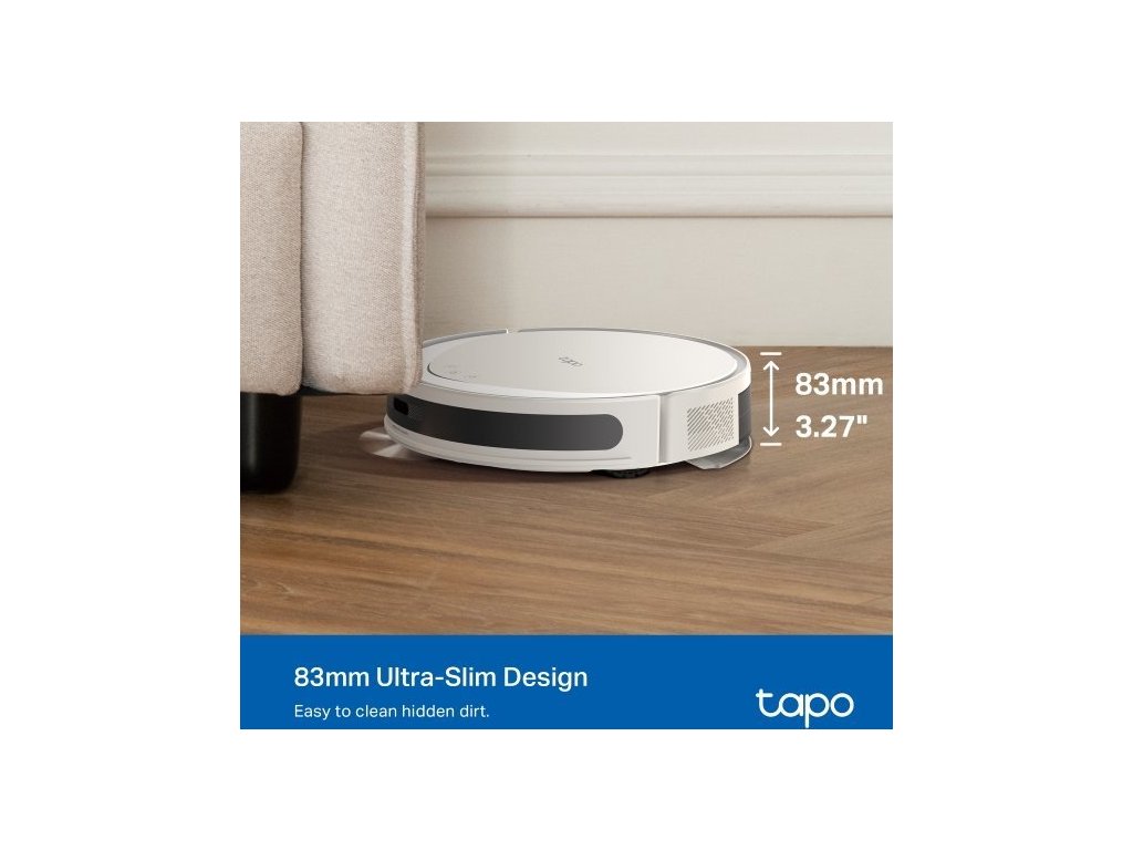 Dílky štíhlému tělu s výškou 83 mm dokáže vysavač zajet i pod nábytek. Chytrá technologie Tapo IQ+ Smart Cleaning funguje jako mozek vysavače. Pokročilé senzory a algoritmy zabrání vysavači narážet do věcí, uvíznout pod nábytkem nebo sjet ze schodů. Snadno překoná dveřní prahy a tlusté koberce s výškou do 22 mm, takže ho nebudete muset neustále hlídat.
