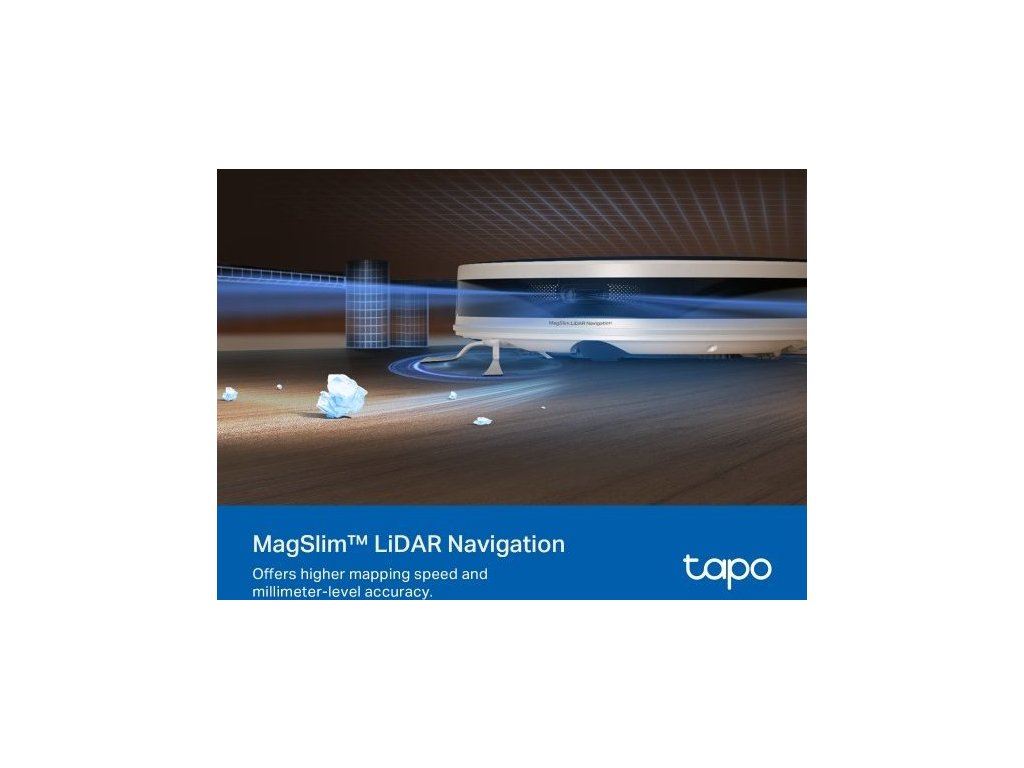 Vysavač TP-Link je vybavený inteligentním navigačním systémem MagSlim™ LiDAR, s jehož pomocí dokáže během několika minut zmapovat celou domácnost. Rozpozná a zafixuje také zdi a různé překážky. Díky 4 lokálně uloženým vícepodlažním mapám rychleji rozpoznává různá podlaží. Naskenovanou mapu můžete uzamknout, abyste vysavači zabránili v případných změnách.