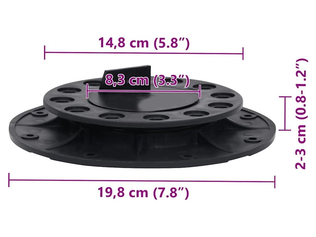 Rektifikační podložka je vyrobená z polypropylenu, který je pevný a odolný a vydrží mnoho let. Snadno ji nastavíte do požadované výšky, takže bez problémů dosáhnete přesně vyrovnané pokládky. Tyto terče poskytují stabilní podporu pod terasová prkna.