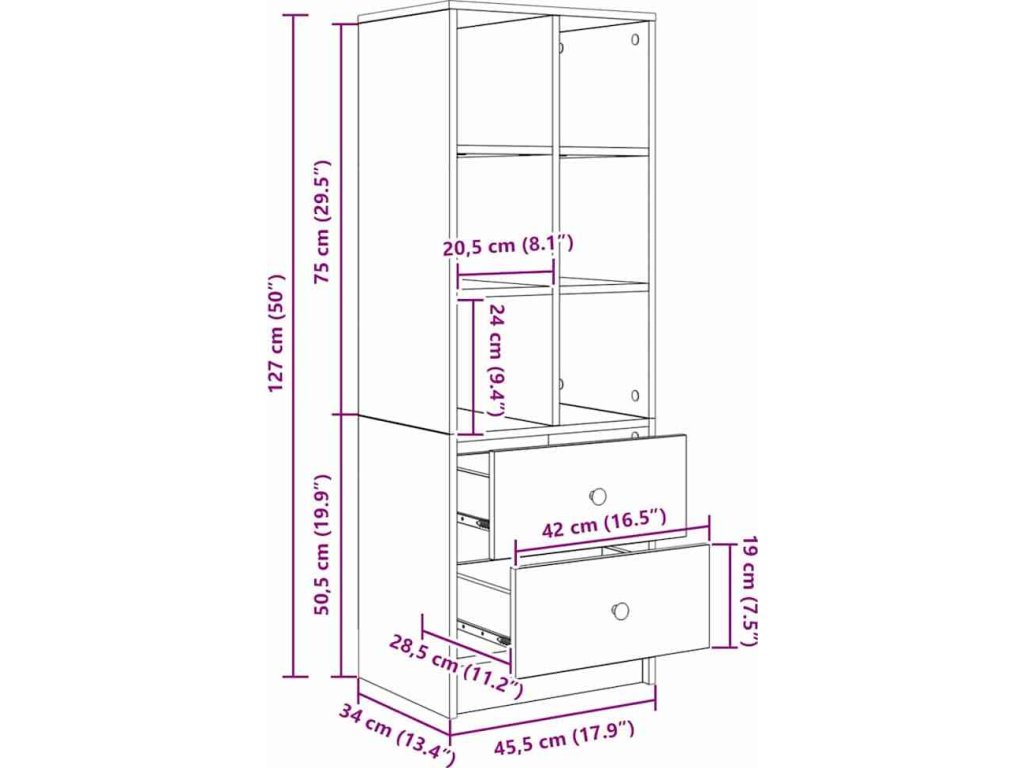 Vysoký bufet se zásuvkou Staré dřevo 45,5 x 34 x 127 cm [869368]