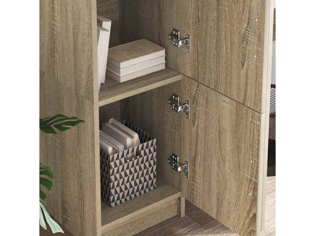 - Stavba z kompozitního dřeva: Tato vysoká skříň vydrží díky pevnému kompozitnímu dřevu. Snadno se udržuje, takže ti poslouží dlouho.