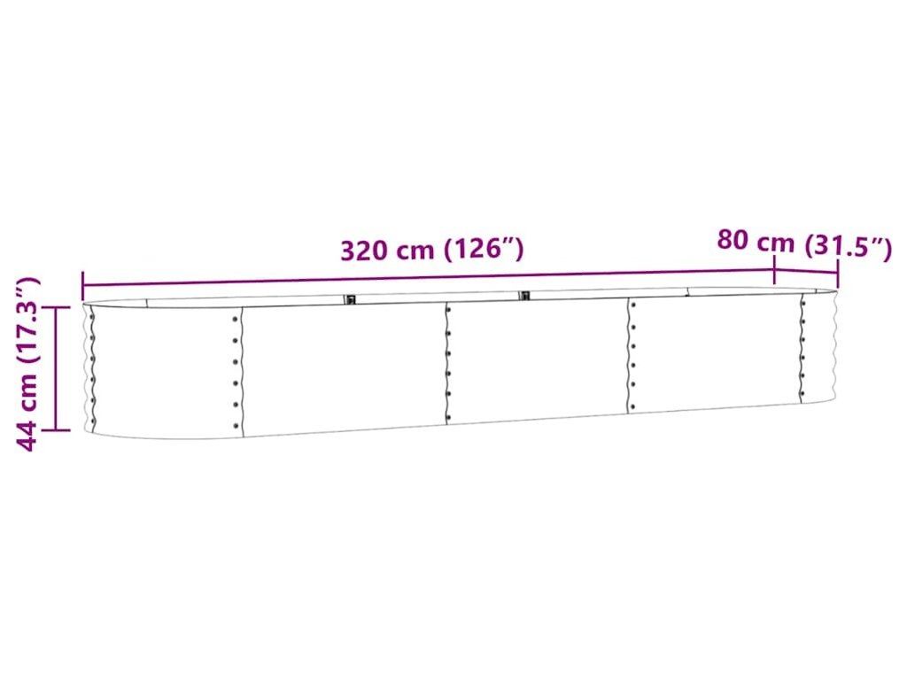 Vyvýšený záhon Hnědá 320 x 80 x 44 cm Ocel [42008138]
