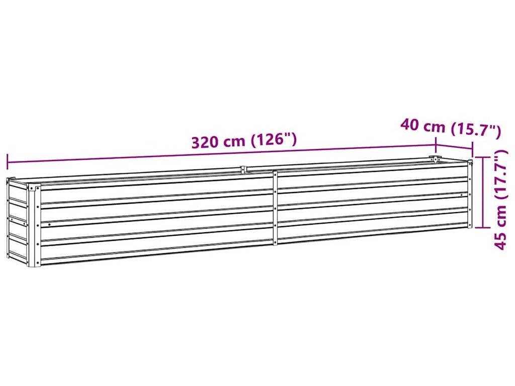 Vyvýšený záhon pozinkovaná ocel 320 x 40 x 45 cm [47054]