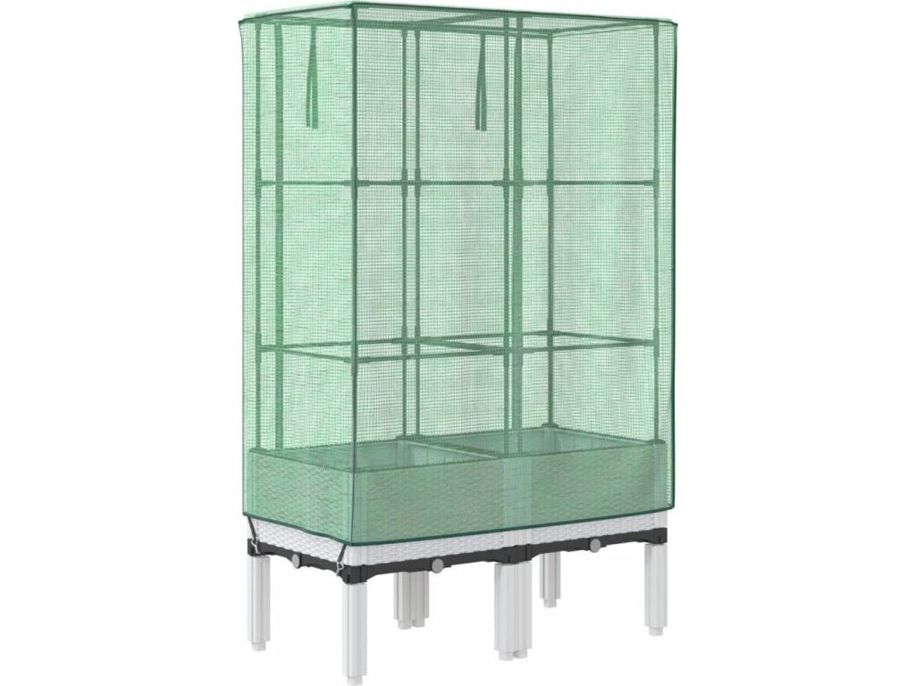 - Funkční kryt: Vyvýšený záhon je vybaven voděodolným polyethylenovým krytem, který chrání rostliny před extrémními teplotami a zároveň je chrání před hmyzem, ptáky a drobnými živočichy.