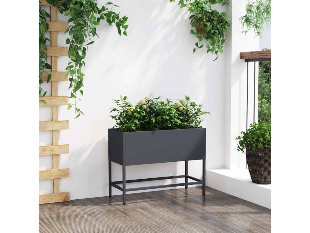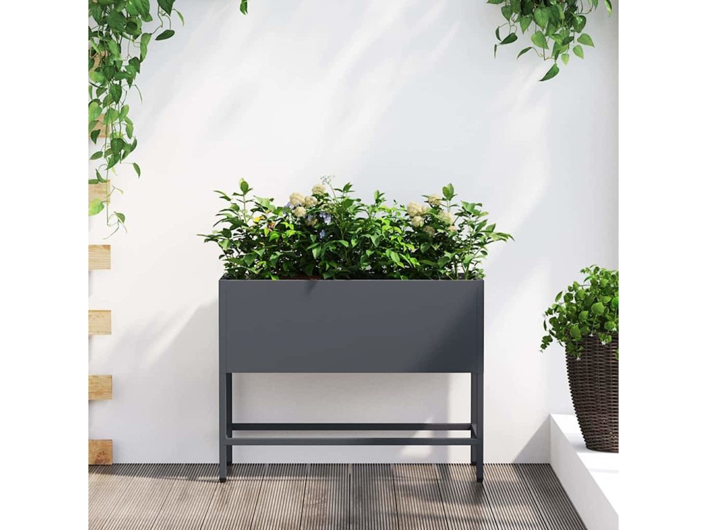 Vyvýšený zahradní květináč Antracit 60 x 26 x 45 cm Ocel [865885]