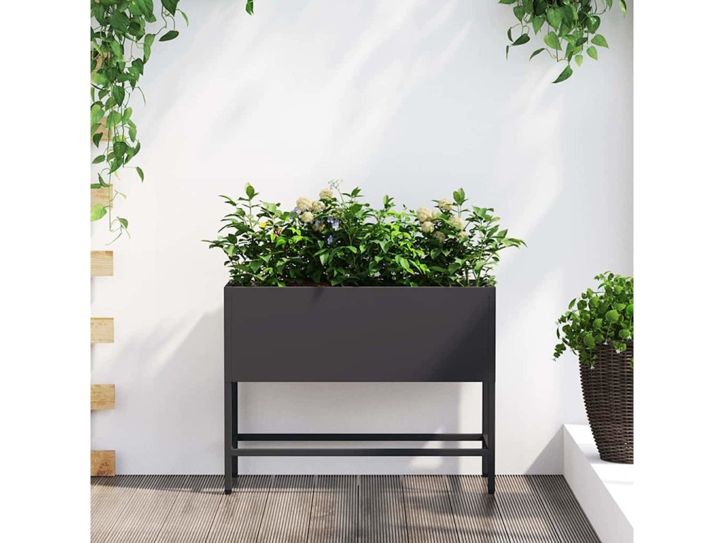 Vyvýšený zahradní květináč Černá 60 x 26 x 45 cm Ocel [865883]