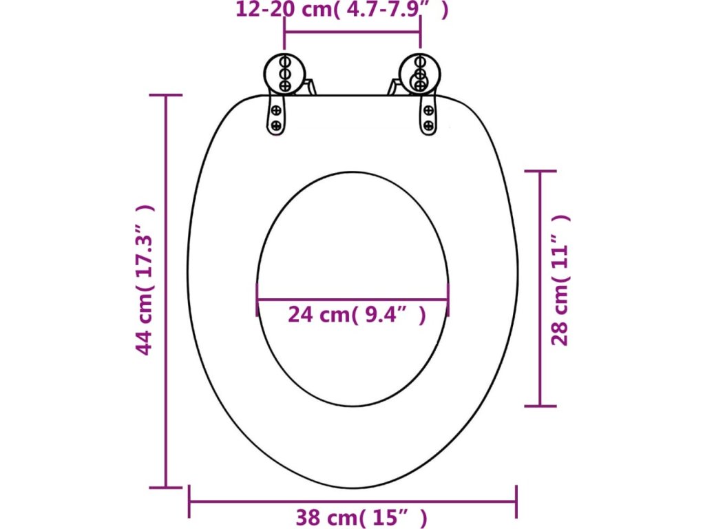WC sedátko sedí na všechny běžné toaletní mísy a vzdálenost pantů lze nastavit mezi 12 a 20 cm.