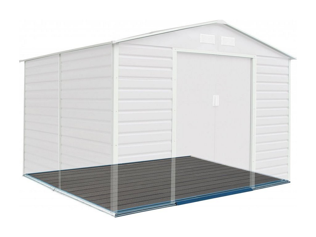 WPC podlaha pro zahradní domek už je dodávána na míru pro konkrétní model a její sestavení je snadné.