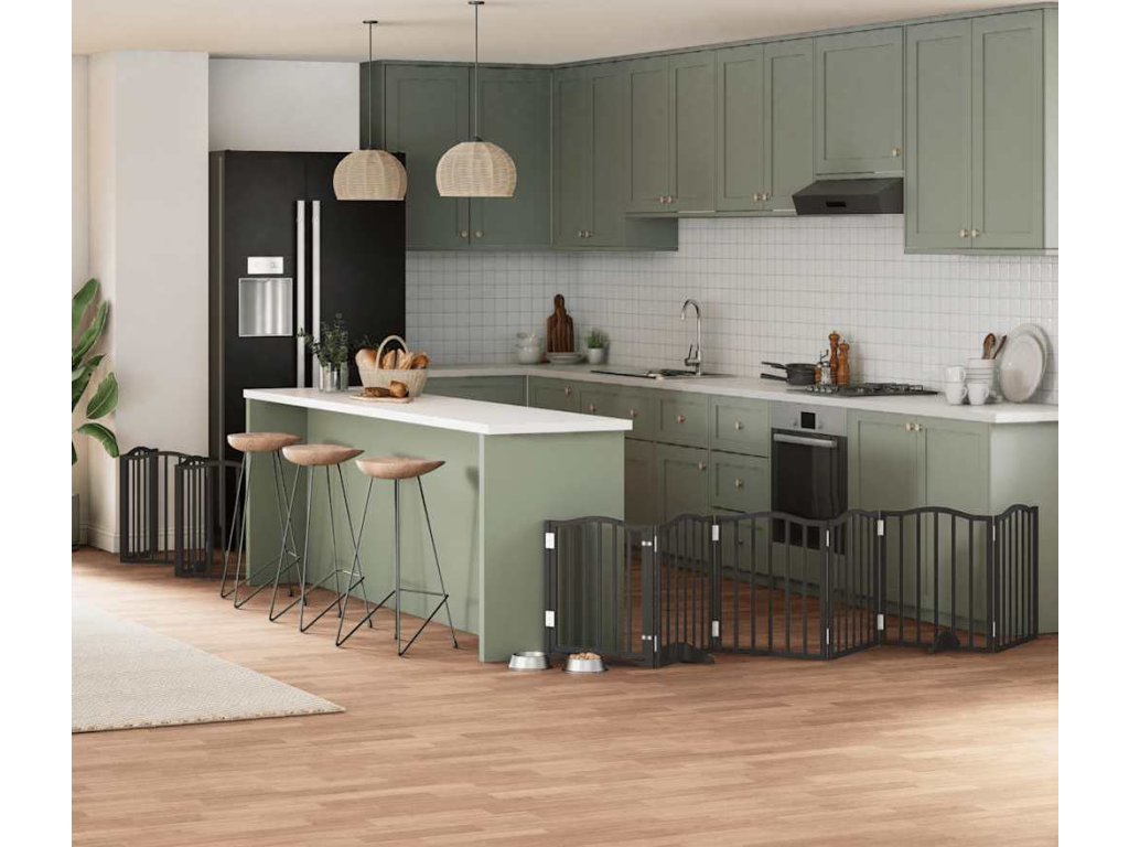 - Praktický design: Psí zábrana je vybavena dvěma pevnými nožičkami, které zajišťují stabilitu a umožňují snadné nastavení. Kromě toho obsahuje dveřní panel a je vybavena zámky, takže poskytuje větší bezpečnost i praktičnost pro vás i vaše mazlíčky.