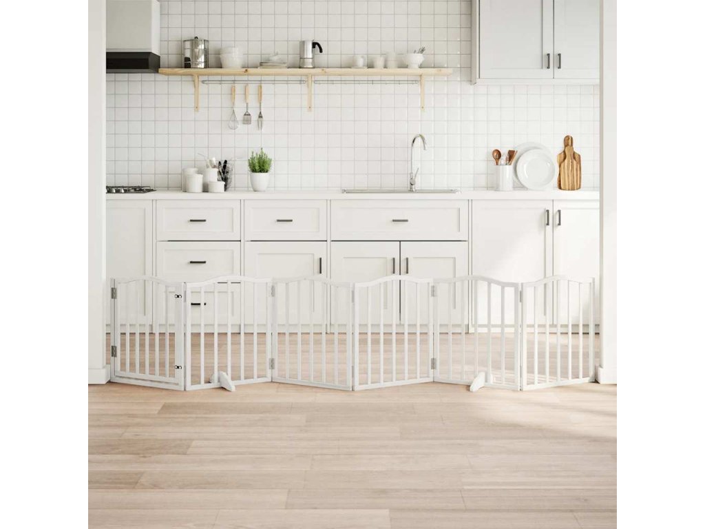 Zábrana pro psy s dvířky skládací 6 panelů 300 cm topol [352213]