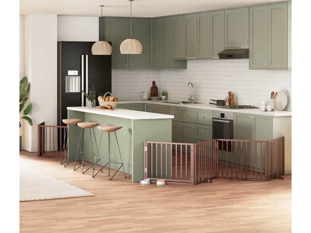 - Více použití: Tato branka dokáže efektivně zabránit vašim mazlíčkům, aby ji přeskočili a dostali se skrz. Proto je ideální k zajištění bezpečnosti vašich mazlíčků v obývacím pokoji, kuchyni, na schodech nebo ve dveřích.