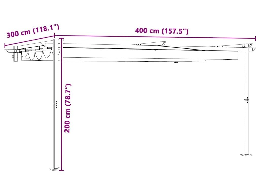 Tento nástěnný altán je skvělým doplňkem vašeho venkovního prostoru, který spojuje moderní styl a funkčnost. Perfektní pro letní setkání na zahradách nebo terasách s elegantním a čistým vzhledem. Jeho jednoduchost dává nenápadný, ale přitom poutavý prvek do vaší výzdoby, takže je skvělý pro různé akce – od rodinných večeří po zahradní párty. Díky sklopnému stínění si snadno přizpůsobíte, kolik slunce nebo stínu chcete.
