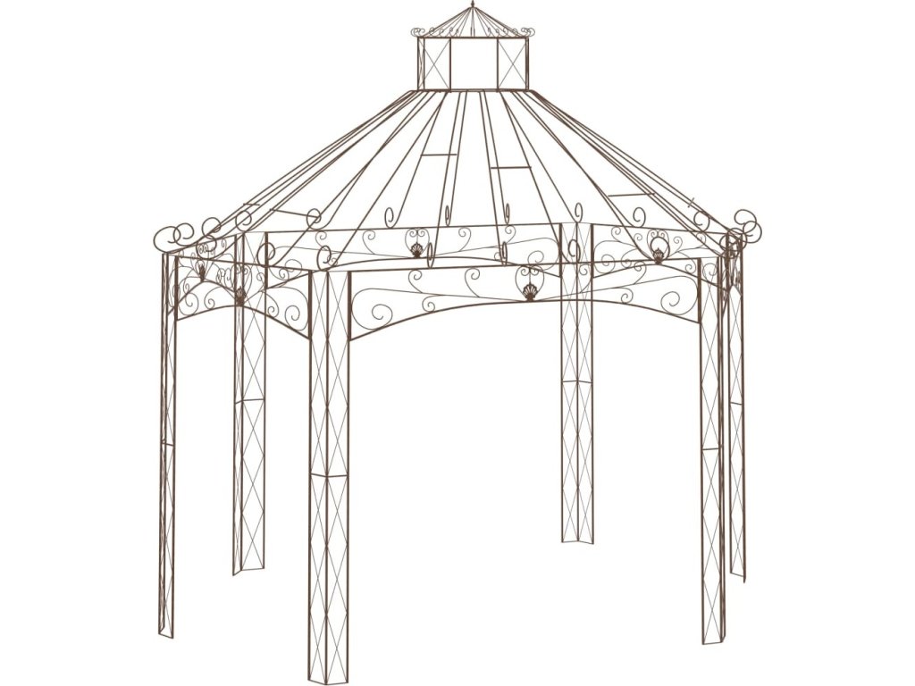 Zahradní altán starožitný hnědý 400 x 258 x 378 cm železo [314000]