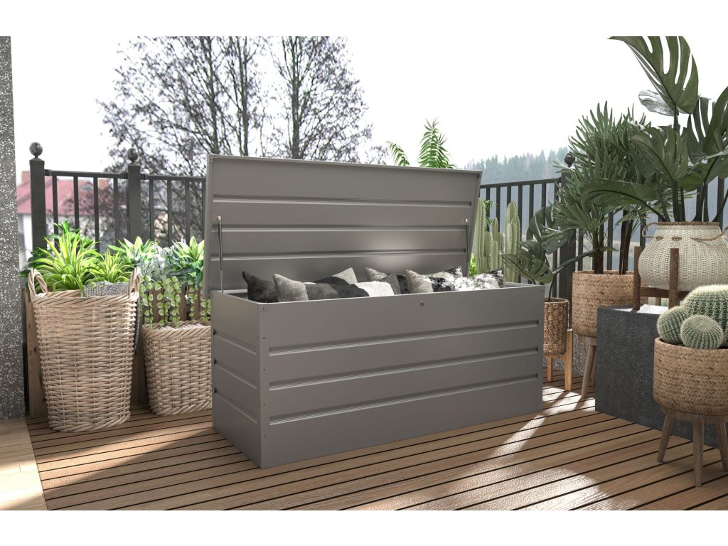 - Prostorný a bytelný úložný prostor – 770l venkovní box má dostatek místa pro uložení zahradních nástrojů, grilovacího vybavení, květináčů a dalších potřeb
