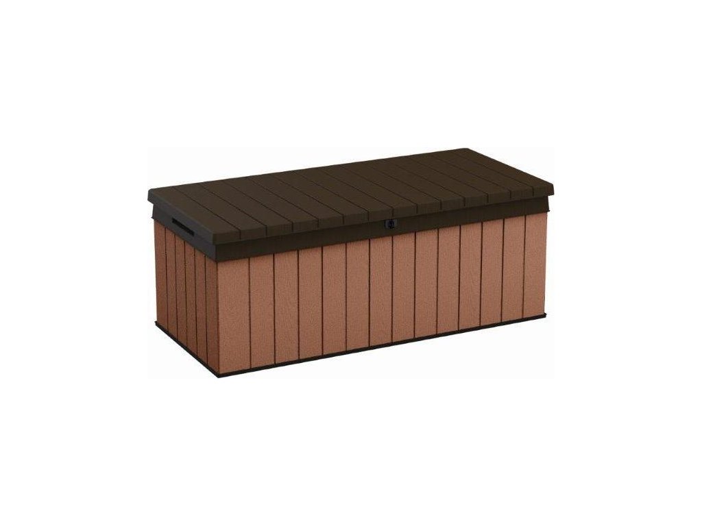 Najděte pro box ideální místo na zahradě. Díky struktuře, která připomíná dřevo, zapadne do každého prostředí. Uložené věci navíc můžete uzamknout uvnitř boxu. Hydraulický pístový systém zajistí plynulé a bezpečné zavírání a otevírání víka. Po zavření se na něj navíc usadí až 2 lidi.