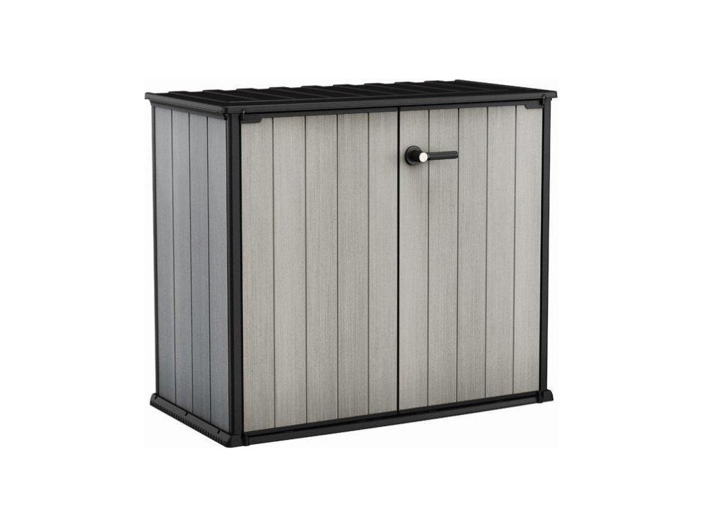 Zahradní box Patio Store značky Keter v šedočerné barvě má objem 1000 litrů. S přehledem tak do něj uložíte například dva odpadkové koše o 120 litrech. Přičemž nakloněný práh vám usnadní jejich manipulaci dovnitř i ven.