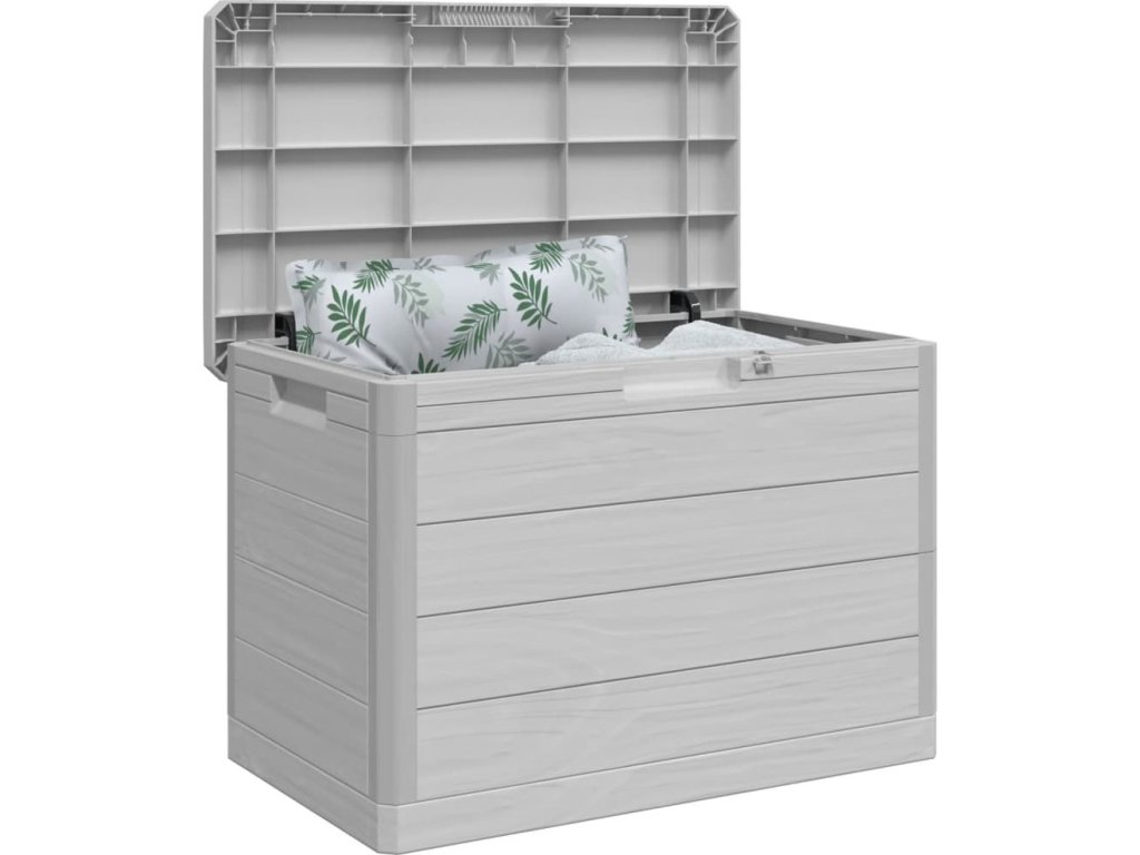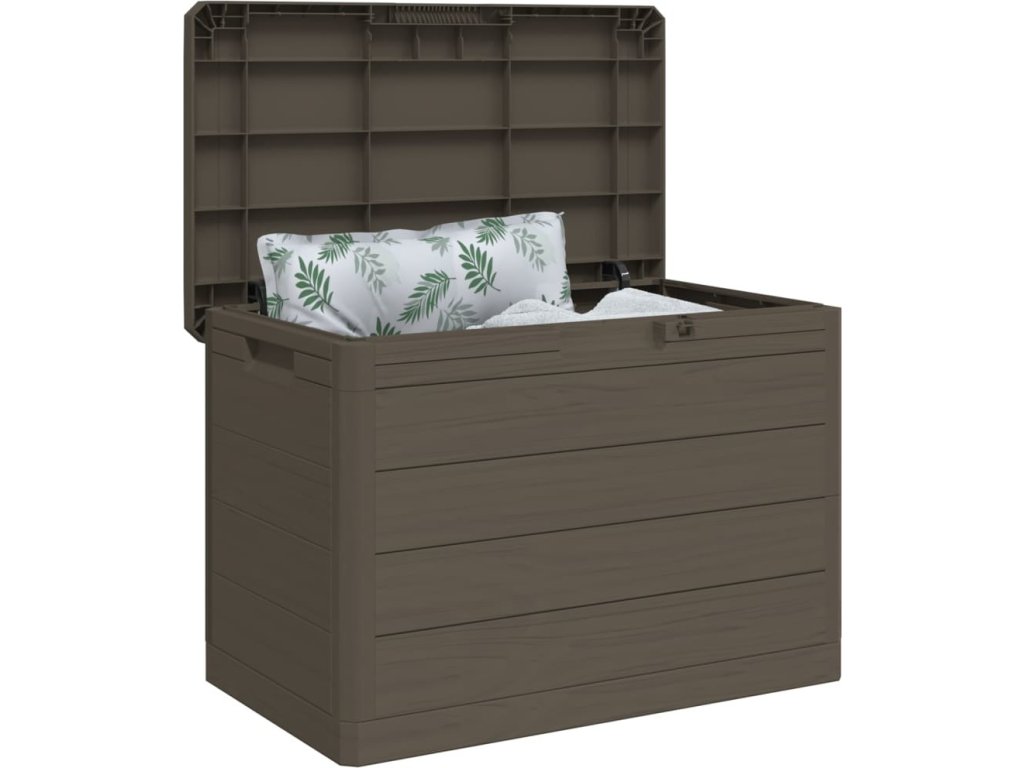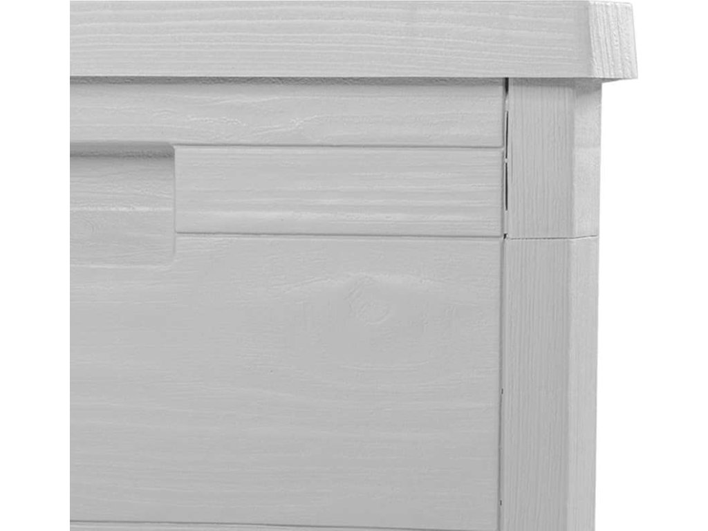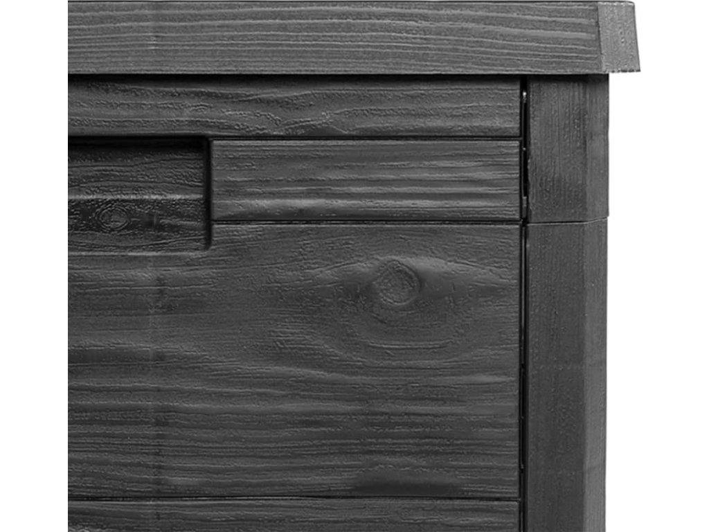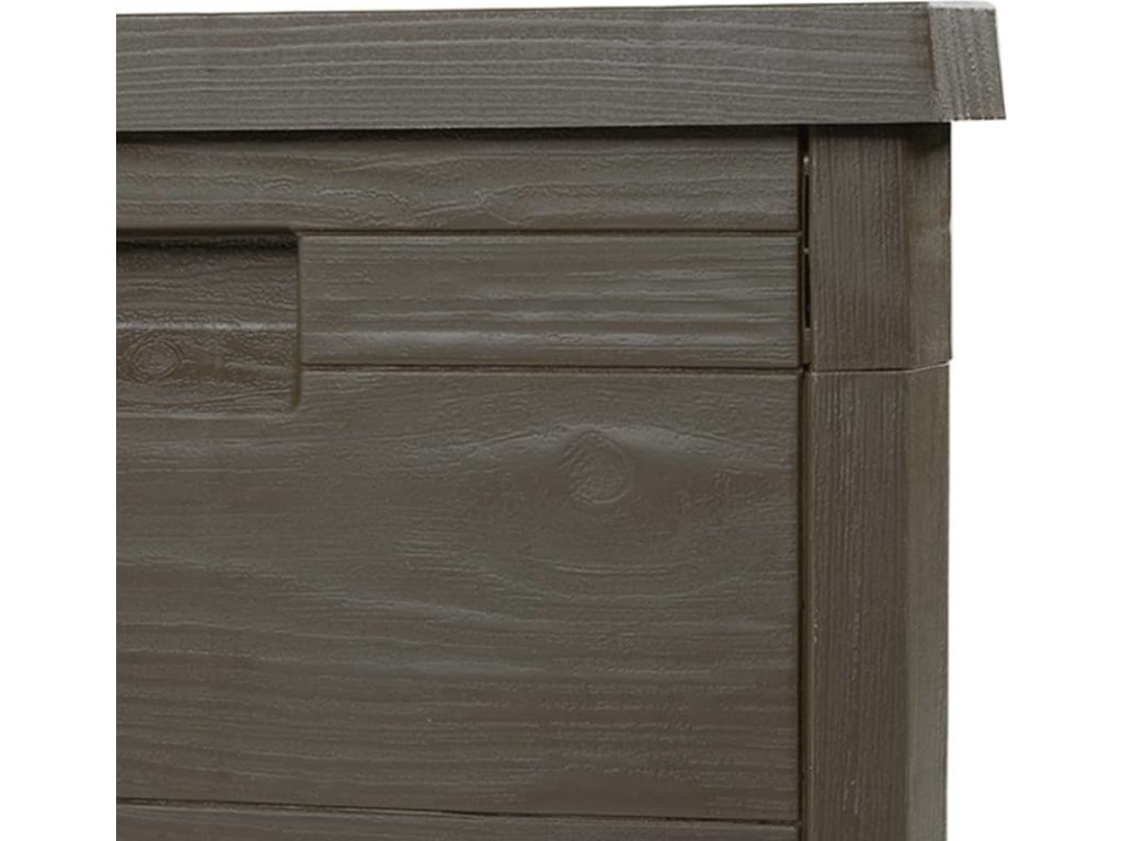- Design s texturou imitující dřevo: Úložný box na podušky imituje dřevěnou texturu, která dodá vašemu venkovnímu obytnému prostoru přírodní kouzlo.