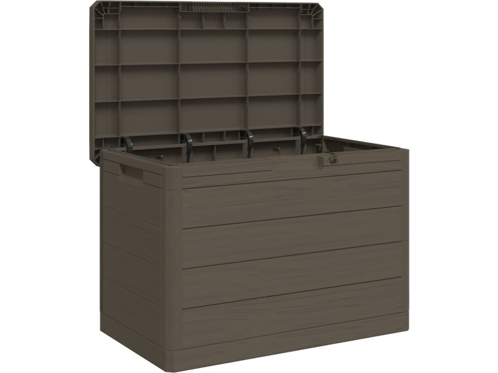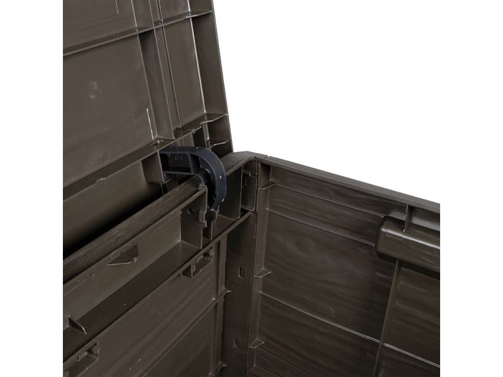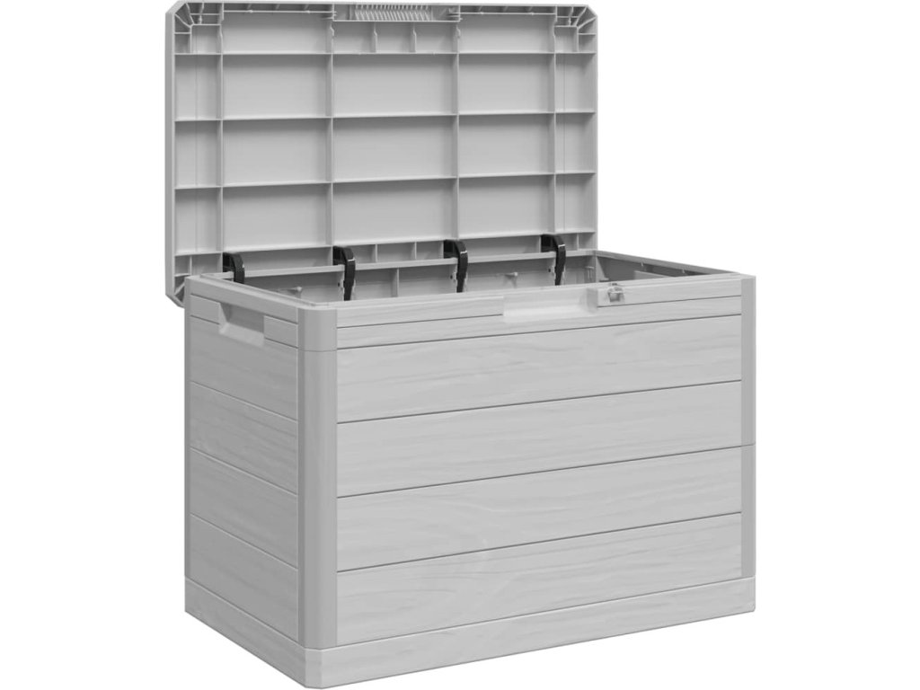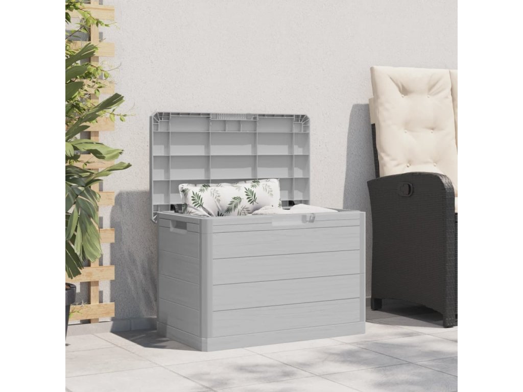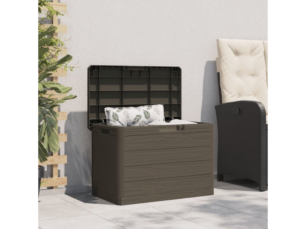 - Design s texturou imitující dřevo: Úložný box na podušky imituje dřevěnou texturu, která dodá vašemu venkovnímu obytnému prostoru přírodní kouzlo.