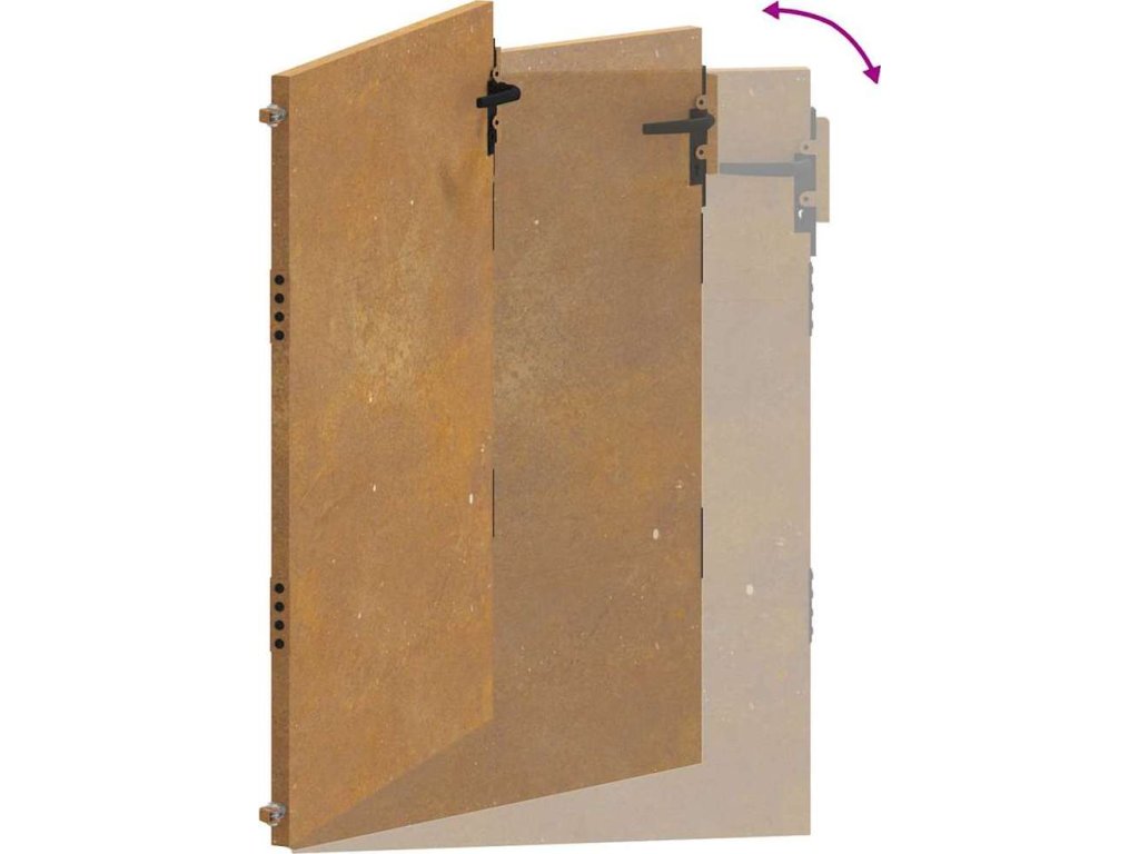 - Materiál s dlouhou životností: Kovová branka je vyrobená z cortenové oceli. Cortenová ocel, také známá jako povětrnostně odolná ocel. Je ze své podstaty antikorozní. Při prvním vystavení atmosférickým podmínkám se na ní vytvoří rezavá ochranná vrstva proti korozi. Nemusíte ji tedy natírat. Tím ušetříte náklady na údržbu a opravy. Výrazný hnědý odstín cortenové oceli jistě upoutá pozornost. Povětrnostně odolná ocel je výjimečně odolná a obstojí ve zkoušce času.