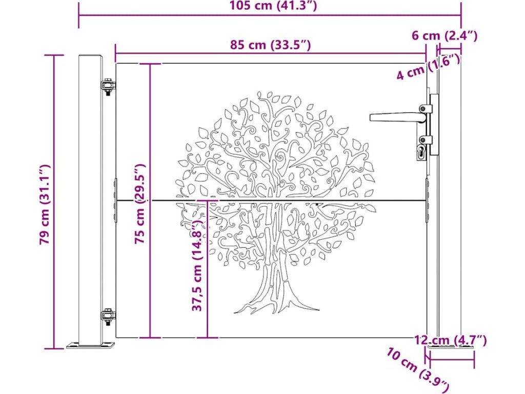 Zahradní branka 100 x 75 cm z cortenové oceli, design stromu [153214]