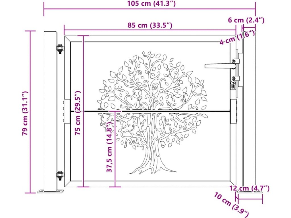 Zahradní branka 100 x 75 cm z cortenové oceli, design stromu [153160]