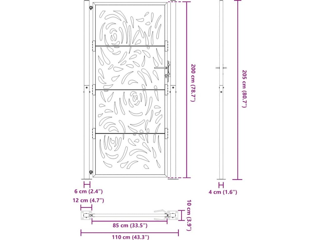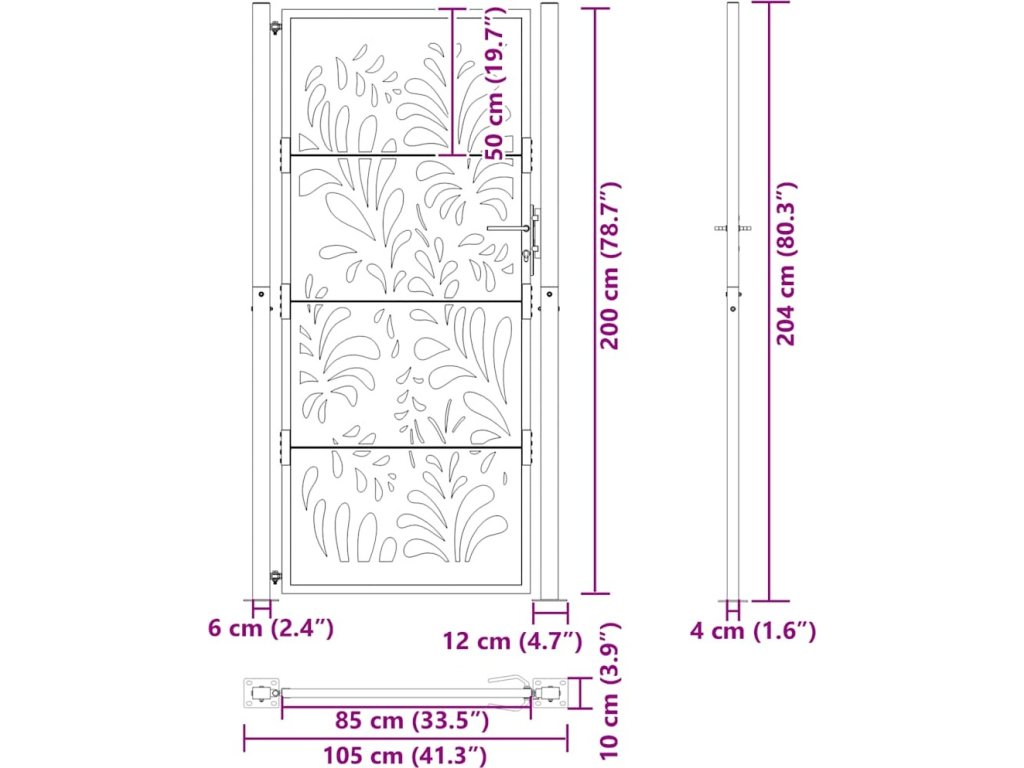Zahradní brána 100 x 200 cm odolná ocel s motivem plamene [4100993]