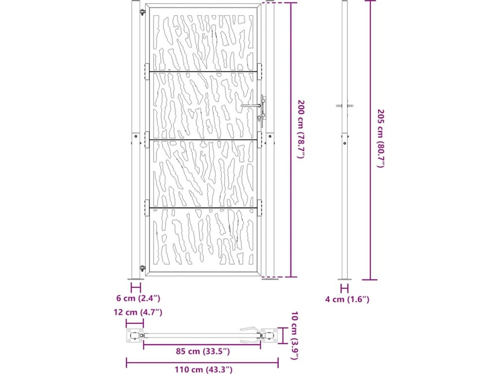 Zahradní brána 100 x 200 cm odolná ocel s motivem stopy [4100983]
