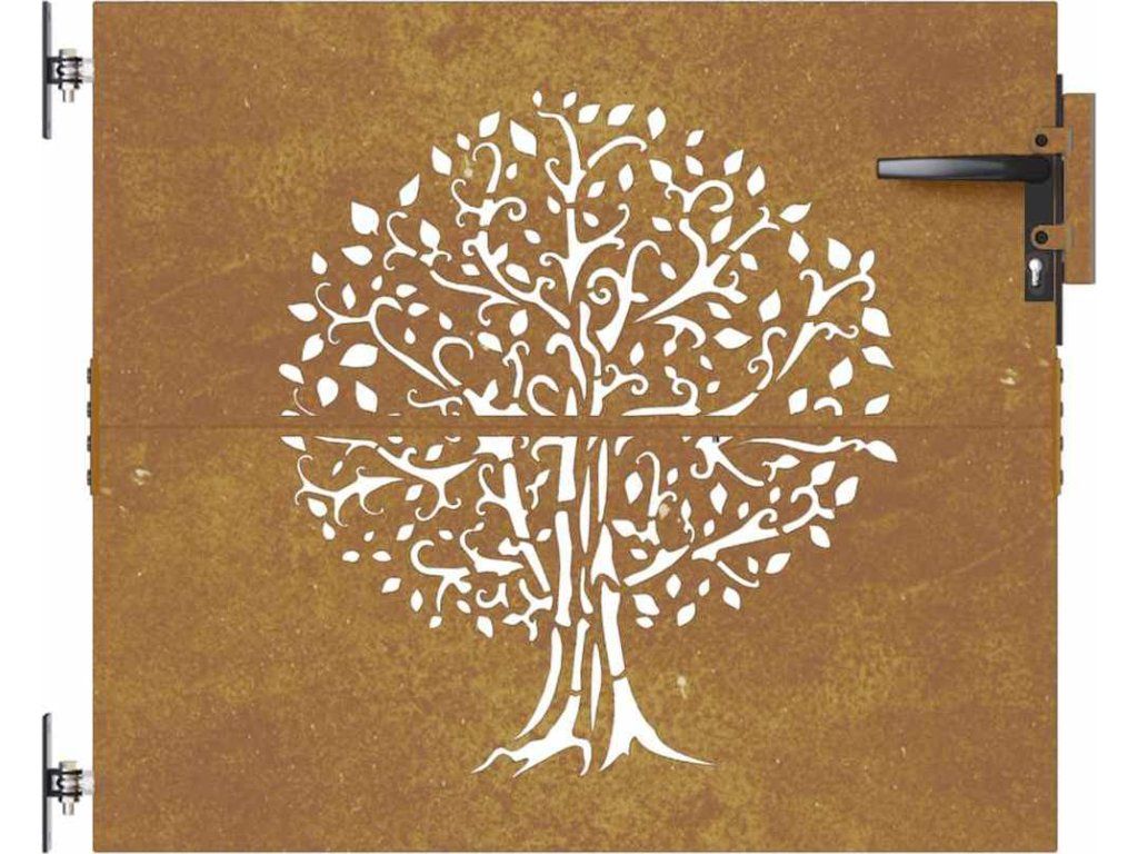 Zahradní branka 85 x 100 cm z cortenové oceli, design stromu [153209]