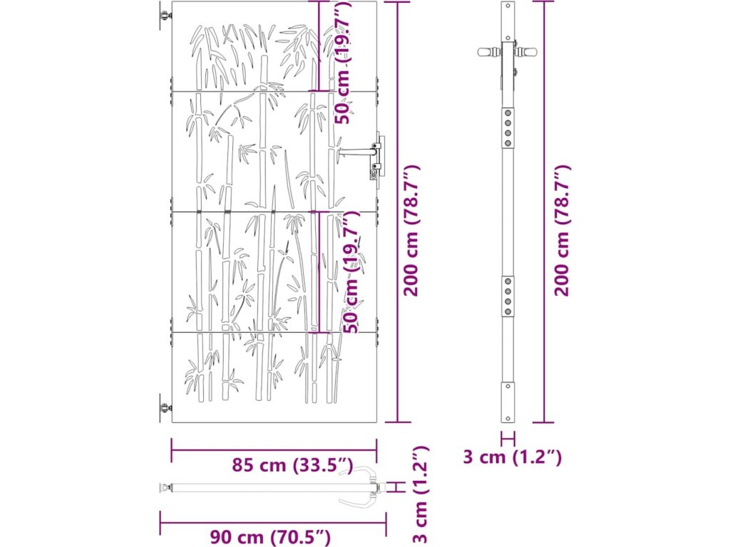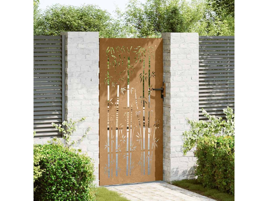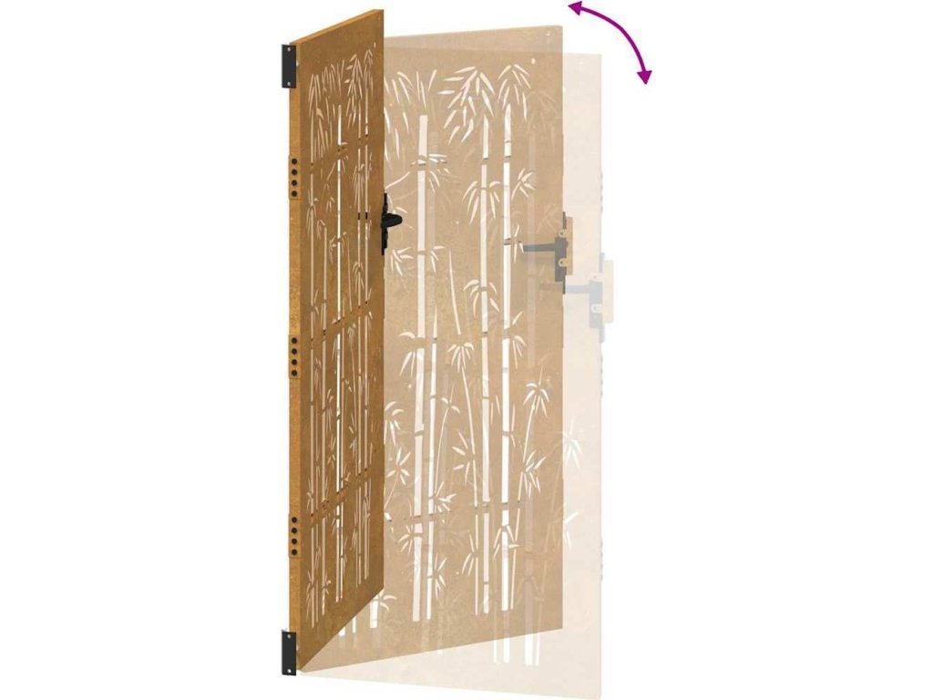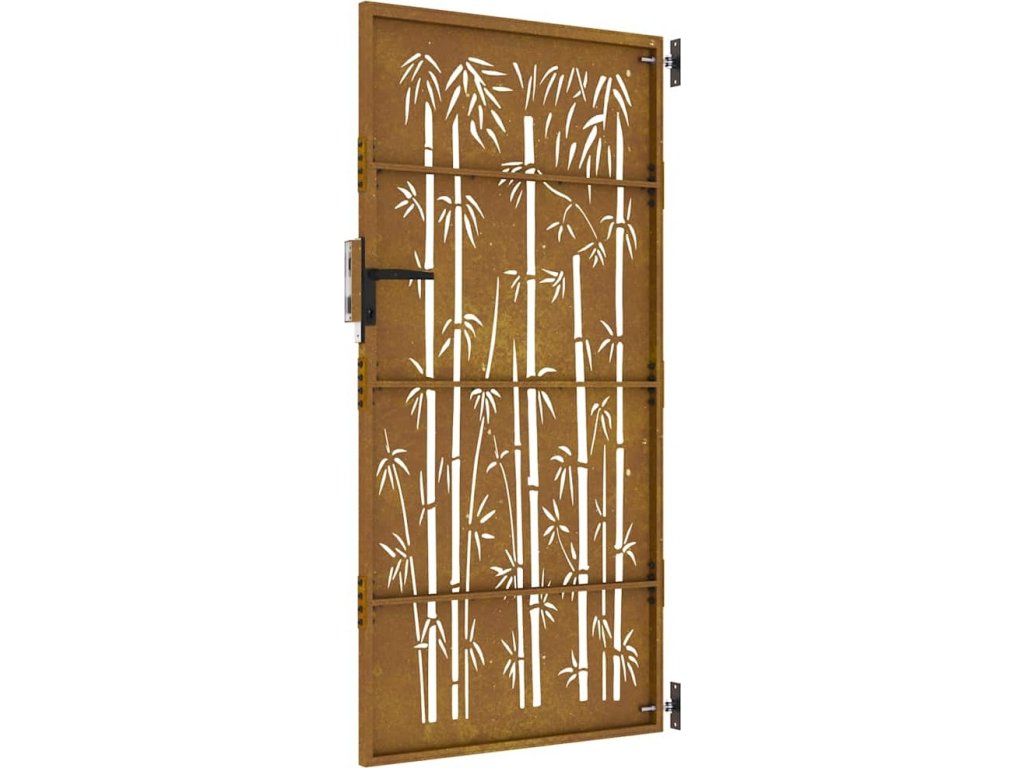 Zahradní branka 85 x 200 cm corten ocel bambusový design [153237]