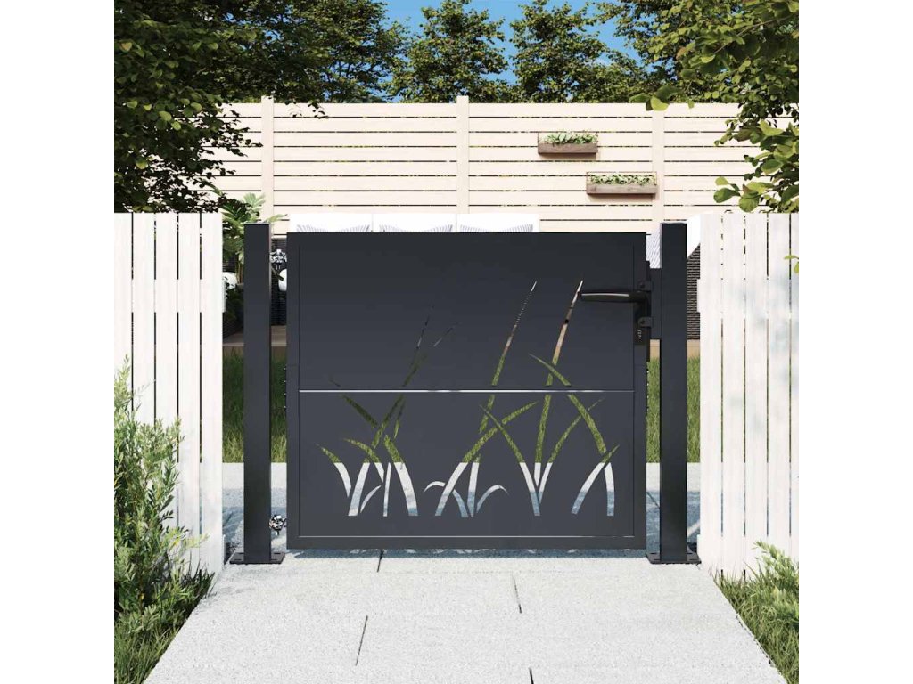 Zahradní branka antracitová 100 x 100 cm ocelová, design trávy [153167]