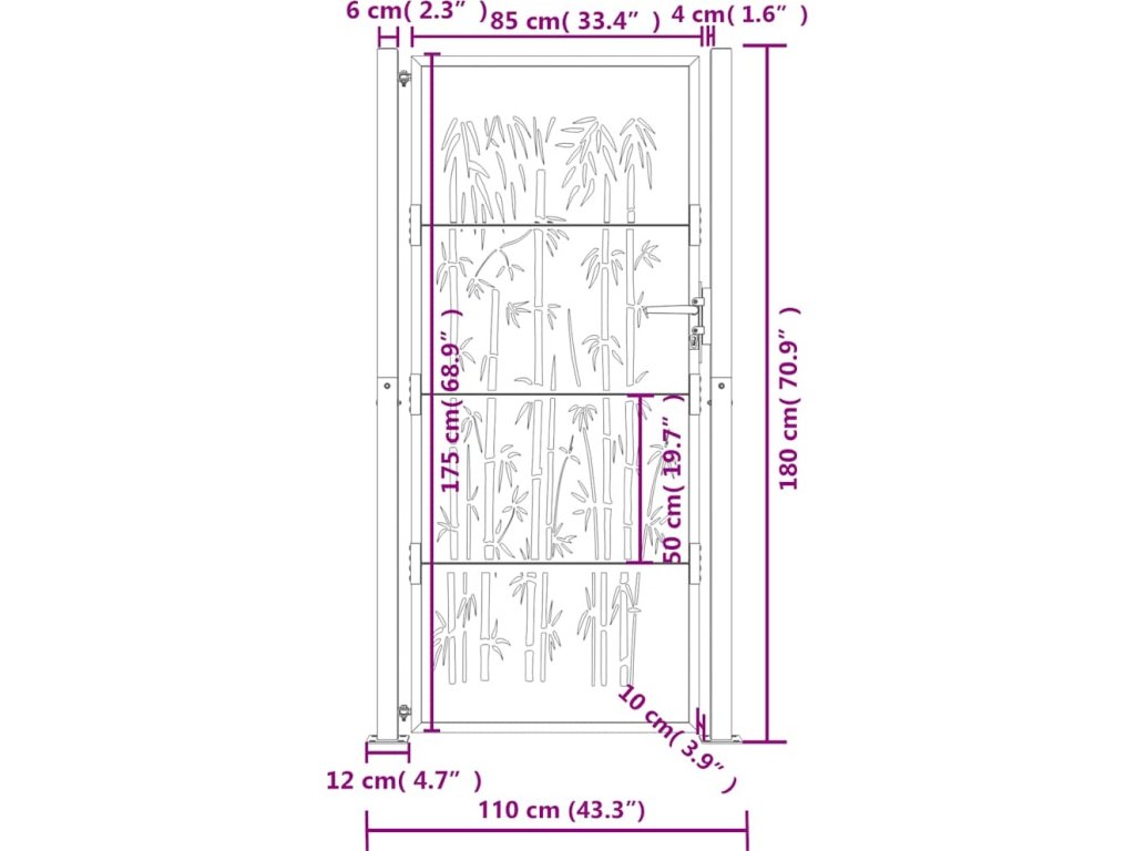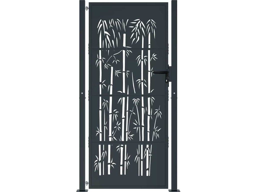 Zahradní branka antracitová 100 x 175 cm ocelová bambusová konstrukce [153182]