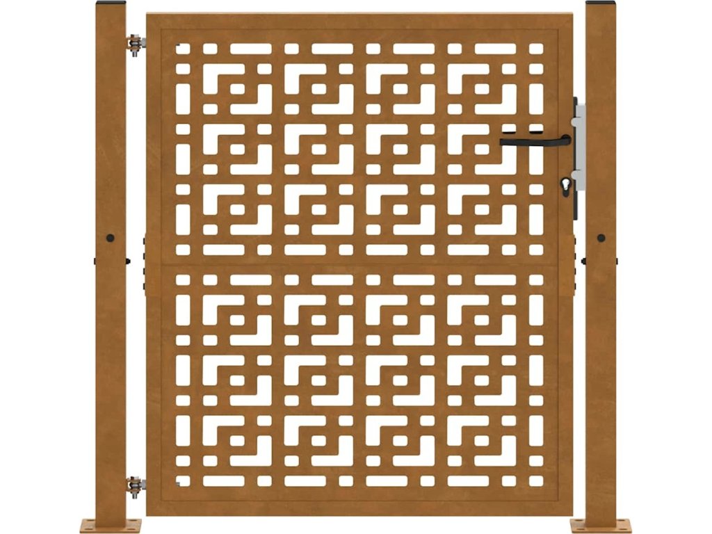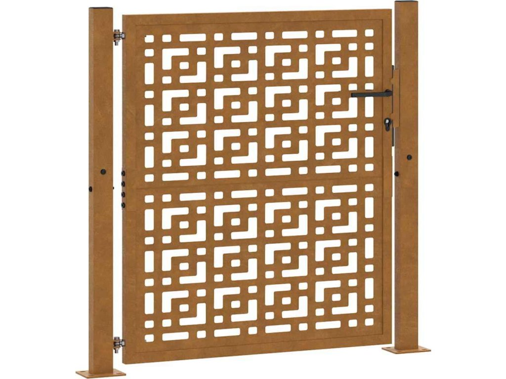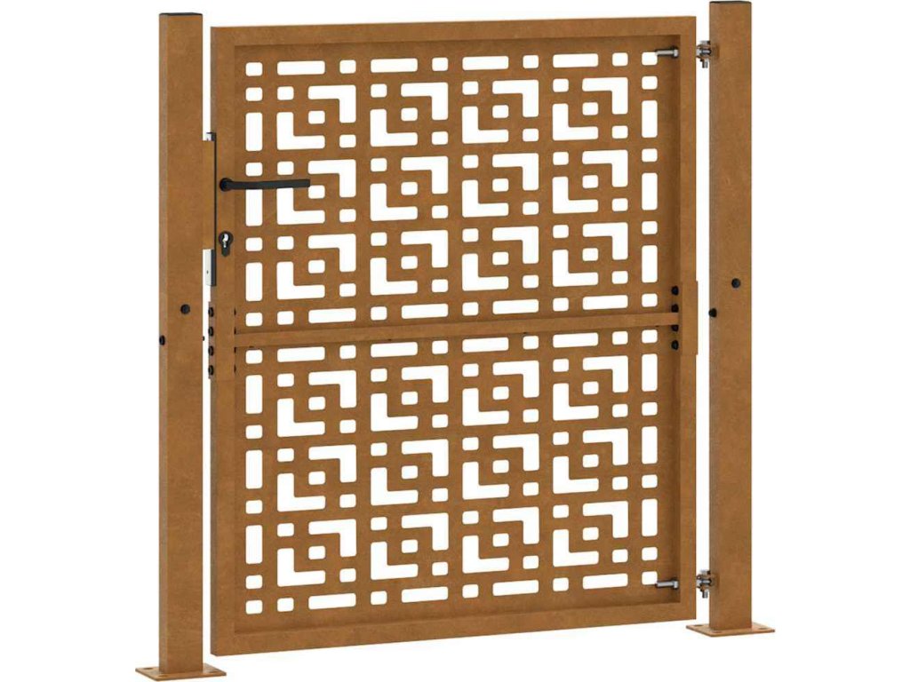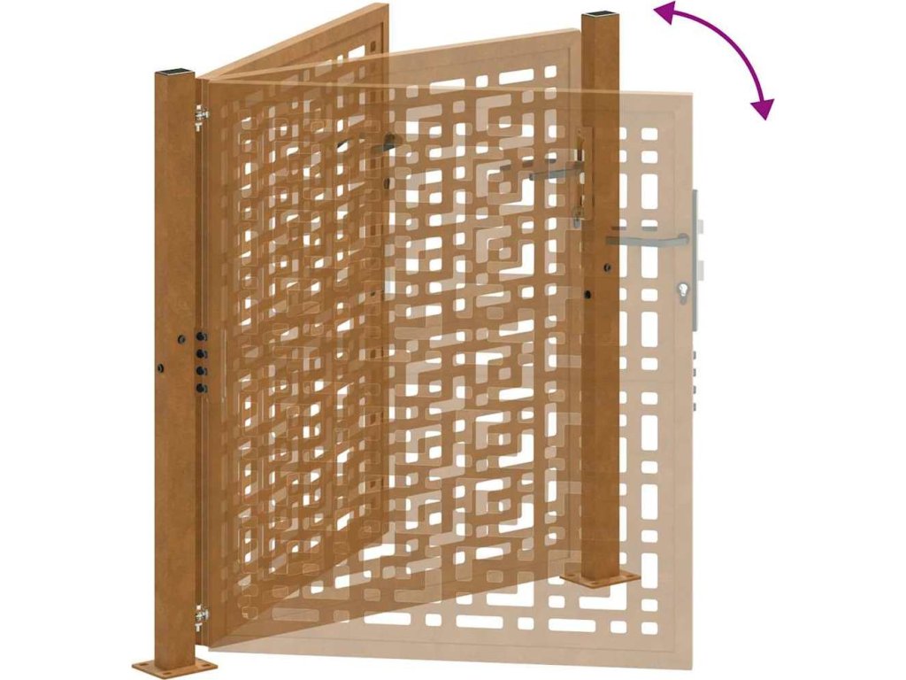 - Odolná konstrukce: Tato plotová brána je vyrobena z oceli odolné proti povětrnostním vlivům. Povětrnostně odolná ocel je ze své podstaty antikorozní. Při prvním vystavení atmosférickým podmínkám se na ní vytvoří ochranná vrstva proti korozi. Nemusíte ji tedy natírat. To vám může pomoci ušetřit náklady na údržbu a opravy. Výrazná hnědá barva na povětrnostní oceli jistě upoutá pozornost. V neposlední řadě je povětrnostní ocel výjimečně odolná a obstojí ve zkoušce času.