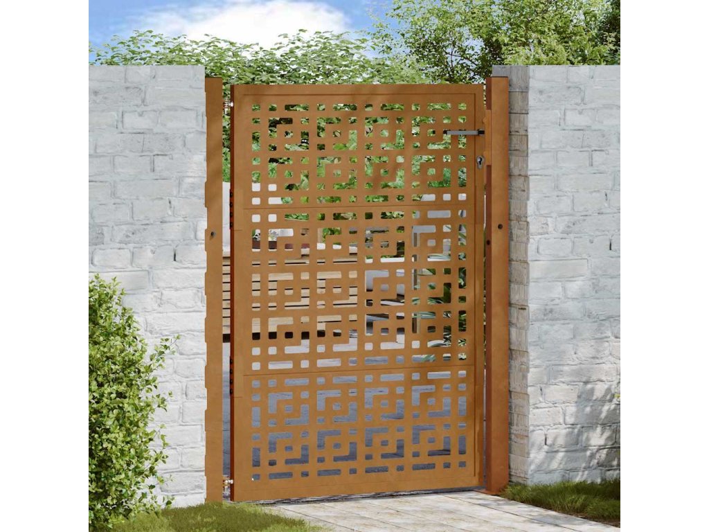 - Odolná konstrukce: Tato plotová brána je vyrobena z oceli odolné proti povětrnostním vlivům. Povětrnostně odolná ocel je ze své podstaty antikorozní. Při prvním vystavení atmosférickým podmínkám se na ní vytvoří ochranná vrstva proti korozi. Nemusíte ji tedy natírat. To vám může pomoci ušetřit náklady na údržbu a opravy. Výrazná hnědá barva na povětrnostní oceli jistě upoutá pozornost. V neposlední řadě je povětrnostní ocel výjimečně odolná a obstojí ve zkoušce času.