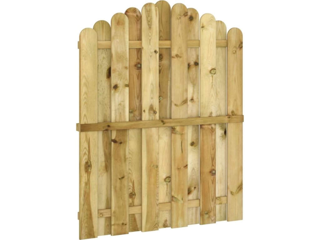 Zahradní branka z masivního dřeva s obloukovým designem vyzařuje rustikální kouzlo a bude ideálním vstupním bodem v plotu kolem vaší zahrady nebo terasy.