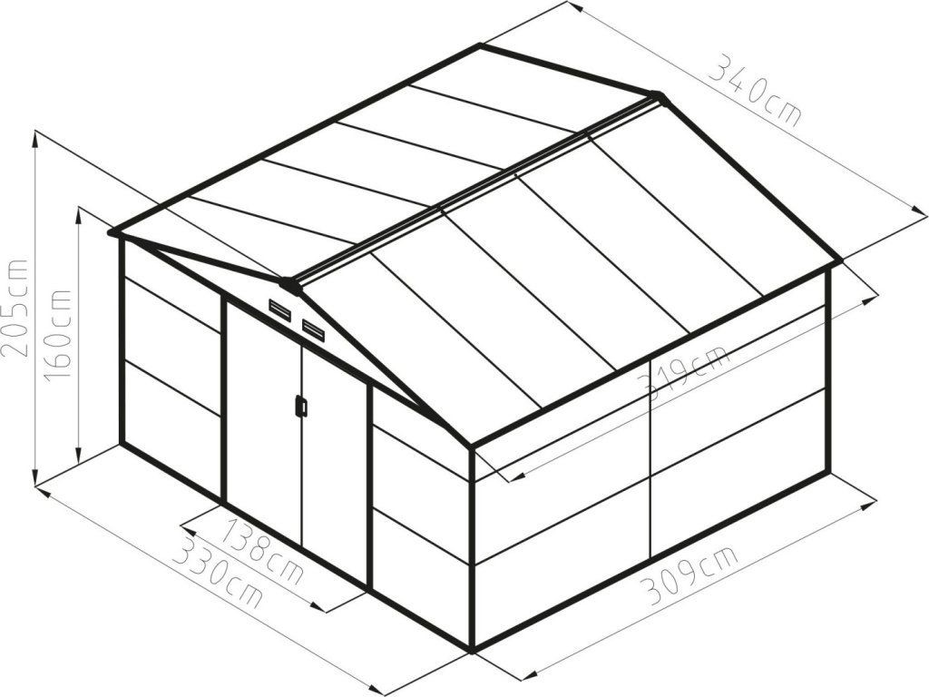 - Rozměry vnější (Š x V x H): 340 x 205 x 319 cm