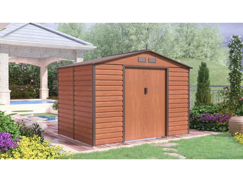 Plechy zahradního domku jsou opatřeny kvalitním nástřikem v dekoru dřeva, proto se nemusíte bát, že plechový domek nenaruší přírodní ráz vaší zahrady. V domku G21 se snoubí tradiční přírodní design s moderními kvalitními materiály. Proto bude domek krášlit vaši zahradu po dlouhá léta, aniž by na něm čas zachoval nějaké stopy.