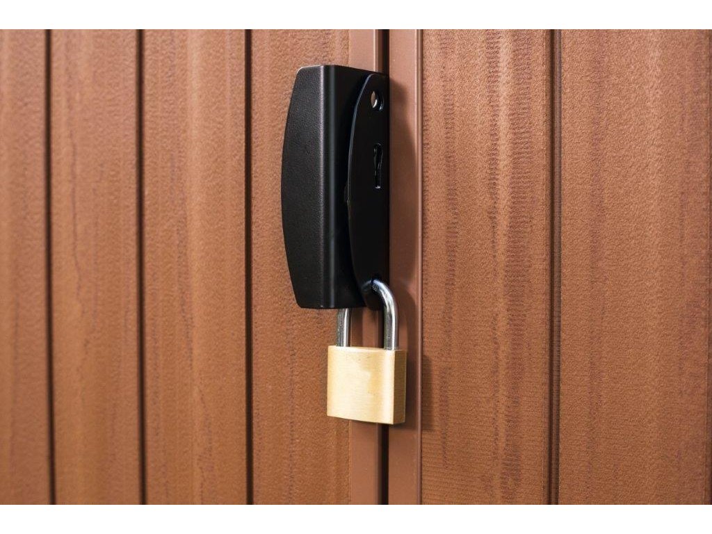 - Přední dveře jsou opatřeny ocelovou západkou, na kterou lze nasadit visací zámek pro větší bezpečnost