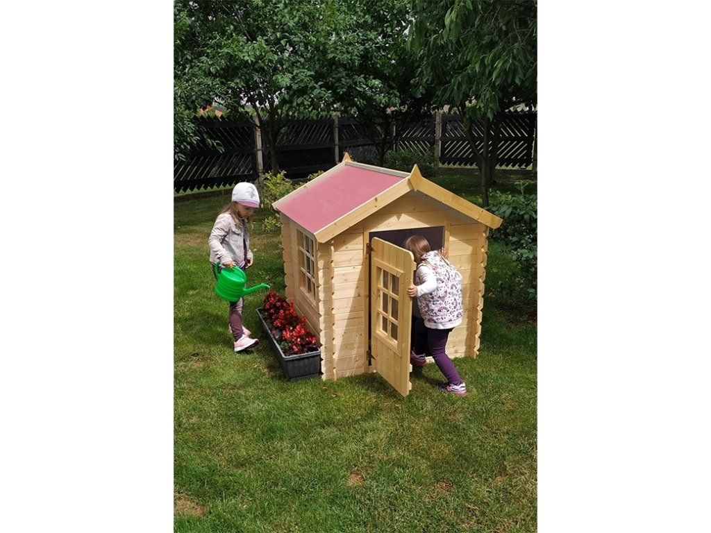 Značka Marimex nabízí dětský zahradní domek Vilemína. Stabilní konstrukce domku je vyrobena ze smrkového dřeva a střecha z plastu. Pro okno a dveře se používá plexisklo. Domek zaujme děti především svým designem. Dřevo v kombinaci s červenou střechou působí na pohled velmi příjemně. Domek váží 30,5 kg, jeho výška je 121 cm a je vhodný pro děti od 3 let.