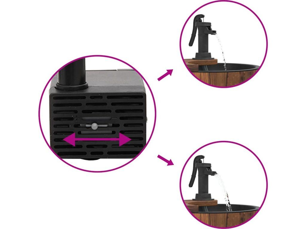 - Stabilní a robustní rám: Dřevěný rám zahradní fontány zajišťuje mimořádnou pevnost a stabilitu.
