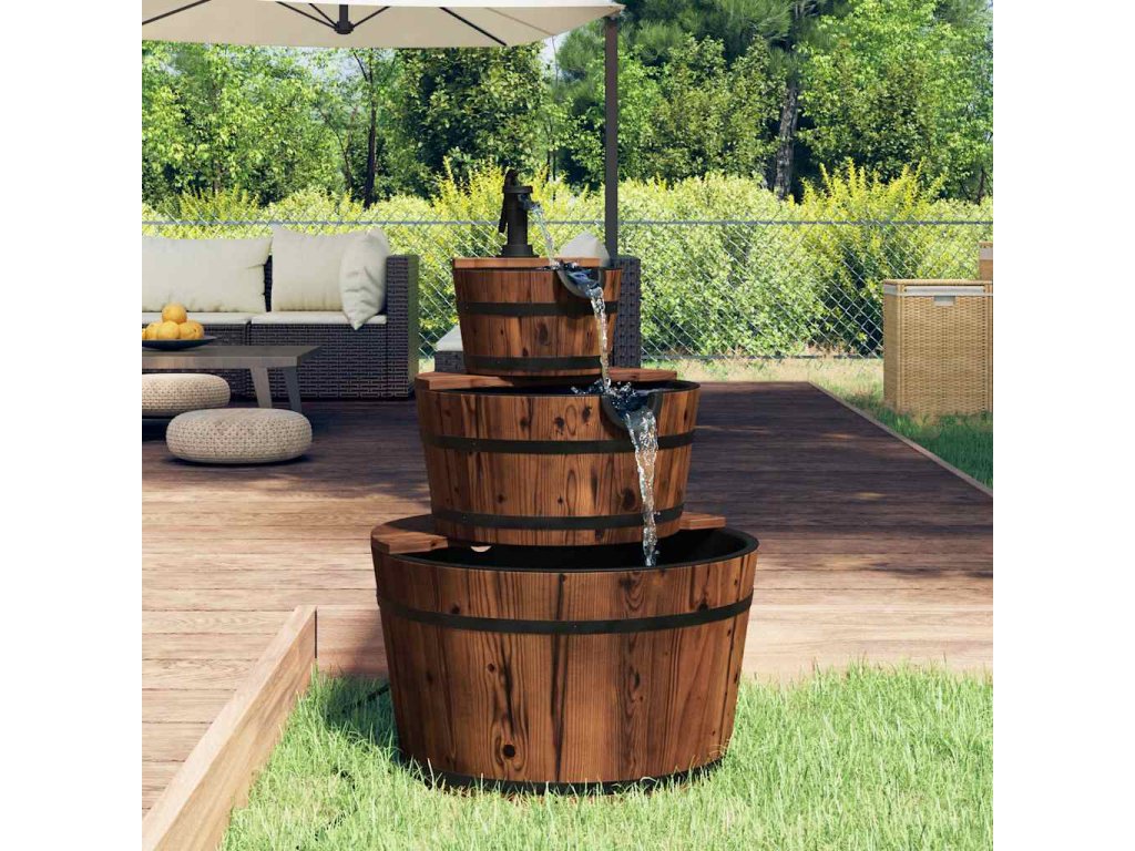 Tato dřevěná fontána je vynikajícím doplňkem na dvorek, terasu a zahradu, který z vašeho domova vytvoří jedinečnou krajinu.