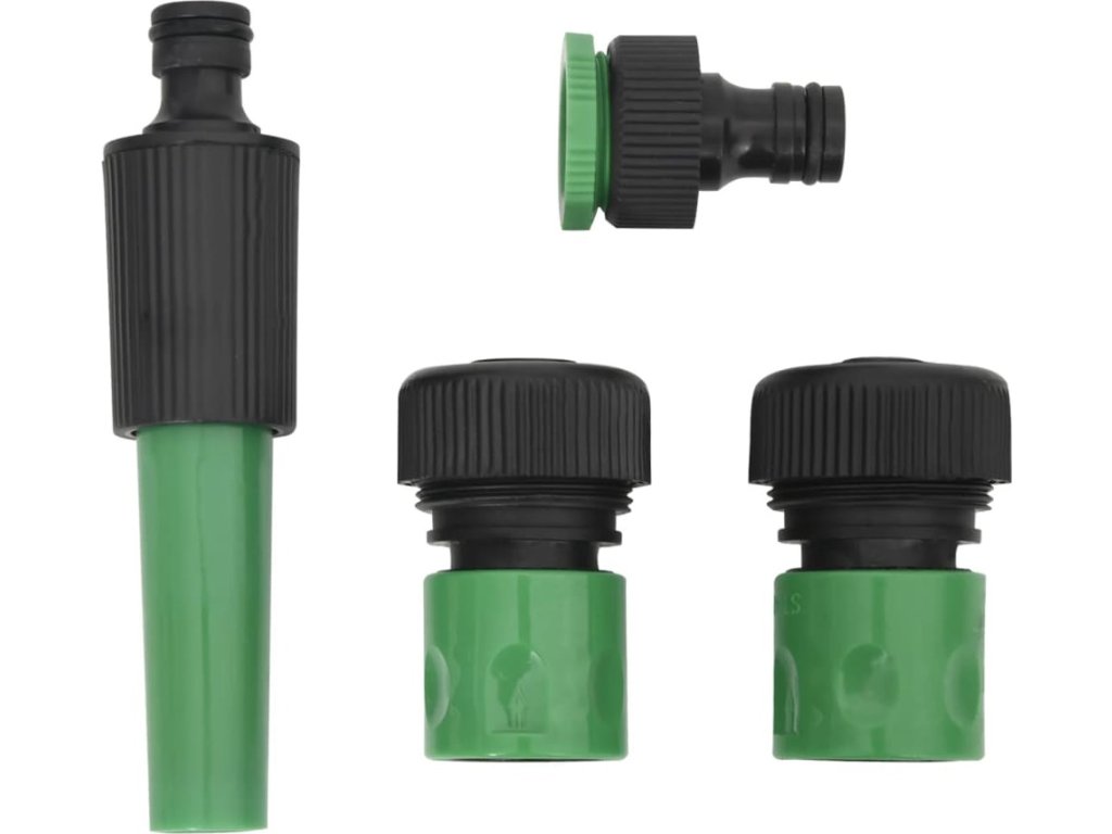 - Praktické příslušenství: PVC trubka se dodává se 4dílnou sadou koncovek. 1 rychlospojka pro zastavení proudu vody při odpojení stříkací trysky, 1 rychlospojka pro nasazení standardní koncovky hadice, 1 stříkací tryska pro individuální nastavení proudu vody a 1 kohoutková spojka. Je navrženo tak, aby poskytovalo kompletní řešení pro zavlažování.