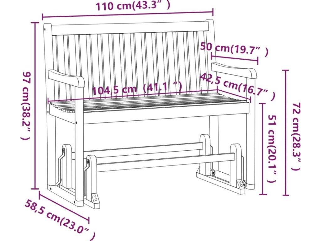 Lavice je vyrobena z masivního akáciového dřeva, tropického tvrdého dřeva s olejovou povrchovou úpravou, takže je odolná vůči povětrnostním vlivům, velmi dlouho vydrží a je vhodná pro venkovní použití. Na této výrazné lavici se můžete pohodlně houpat tam a zpět a užít si chvíle odpočinku s přáteli nebo rodinou.
