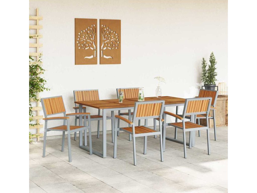 Tento moderní zahradní jídelní set je stvořený pro současné venkovní prostory. Nabízí stylové a praktické řešení pro jídlo venku v zahradách a na terasách. Jeho jednoduché a čisté linie se skvěle hodí do různých venkovních prostředí a poskytují pohodové místo pro jídlo a společenské chvíle. Povrch akáciového dřeva je krásně bohatý a geometrická struktura vypadá elegantně, takže se hodí do každé venkovní atmosféry.