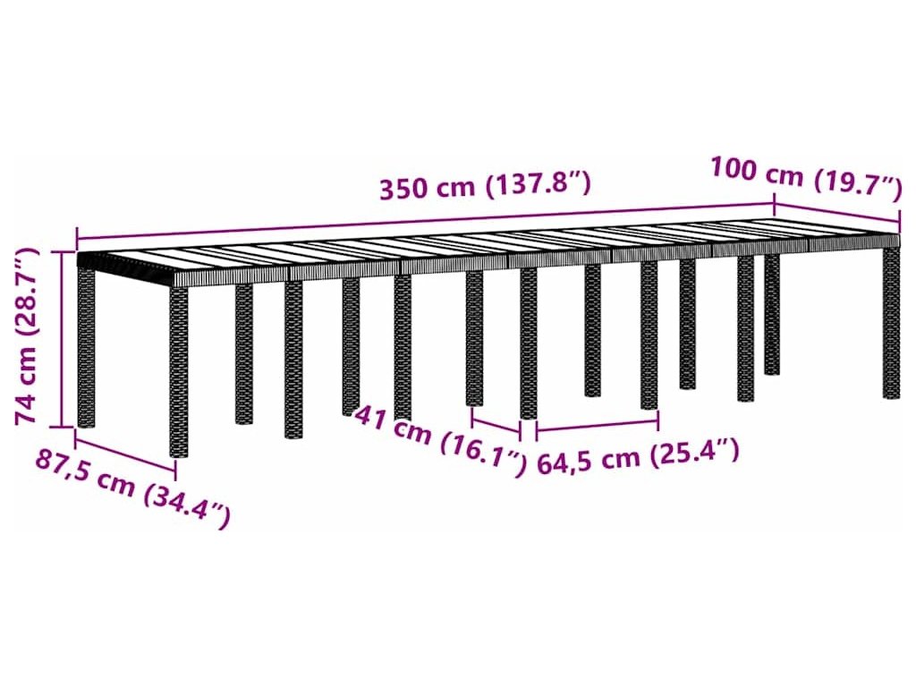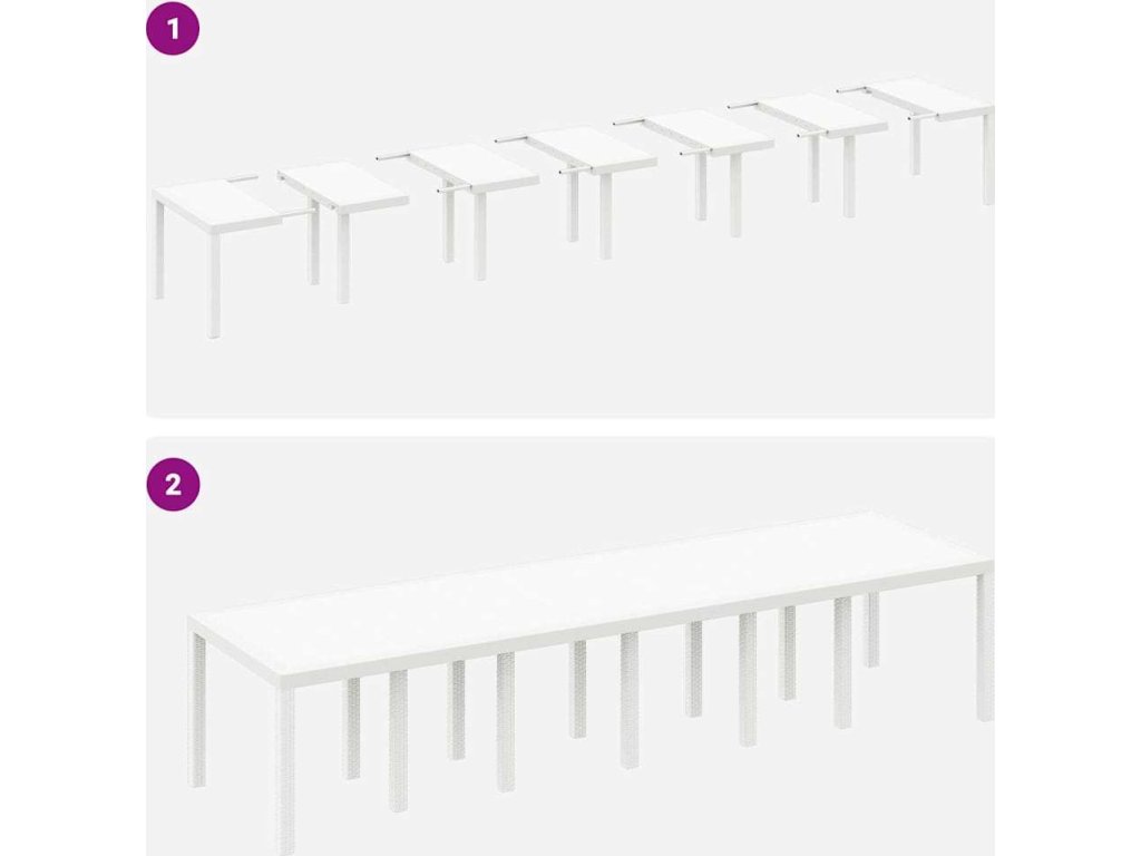 - Sofistikovaný design: Tato zahradní jídelní souprava zosobňuje štíhlý a minimalistický styl, což z ní činí ideální doplněk pro moderní venkovní prostory. Její moderní estetičnost je definována čistými liniemi a obdélníkovým tvarem, který bezproblémově zapadá do různých dekorativních stylů, čímž zvyšuje jak funkci, tak formu ve vaší zahradě.