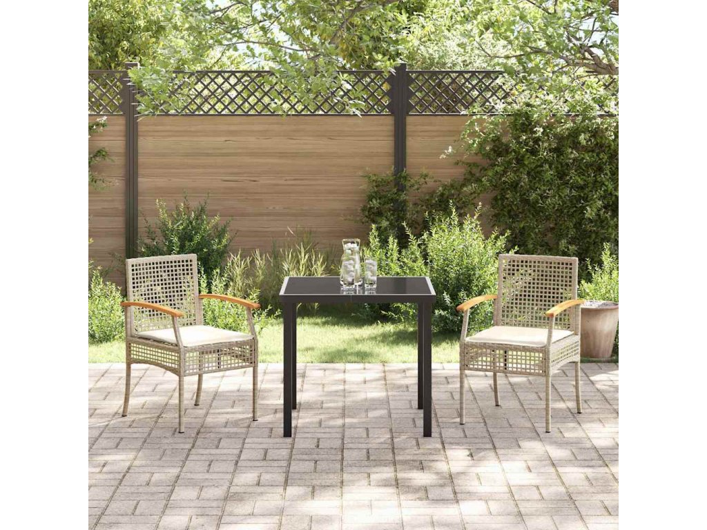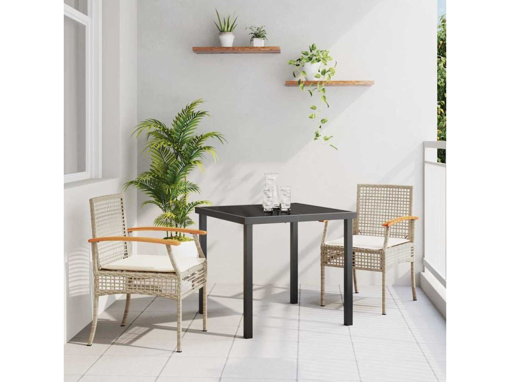 - Odolné materiály: Skvělý mix pevného akáciového dřeva znamená, že váš jídelní set zvládne všechny letní párty. Přirozený vzor dřeva dodává šmrnc elegance a poly ratanové židle jsou pohodlné a trendy. Černá skleněná deska přidává dojem sofistikovanosti ke každému jídlu nebo setkání.
